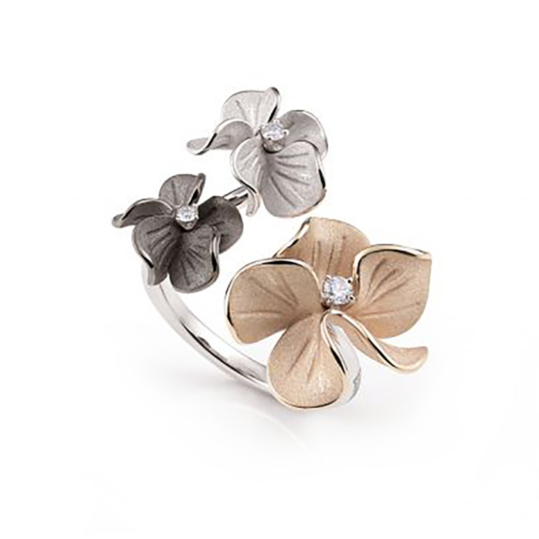 Ref. GAN2925T - Eine zarte Blume, die sich im Wind bewegt. Eine originalgetreue Reproduktion der Natur, die von den erfahrenen Händen unserer Goldschmiede geschaffen wurde. Ein einzigartiges und feines Schmuckstück für eine romantische Frau, das in verschiedenen Goldnuancen erhältlich ist.