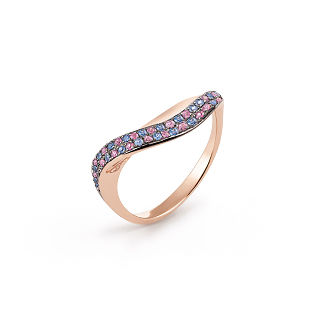 Pavé aus rosa und blauen Saphiren im Brillantschliff