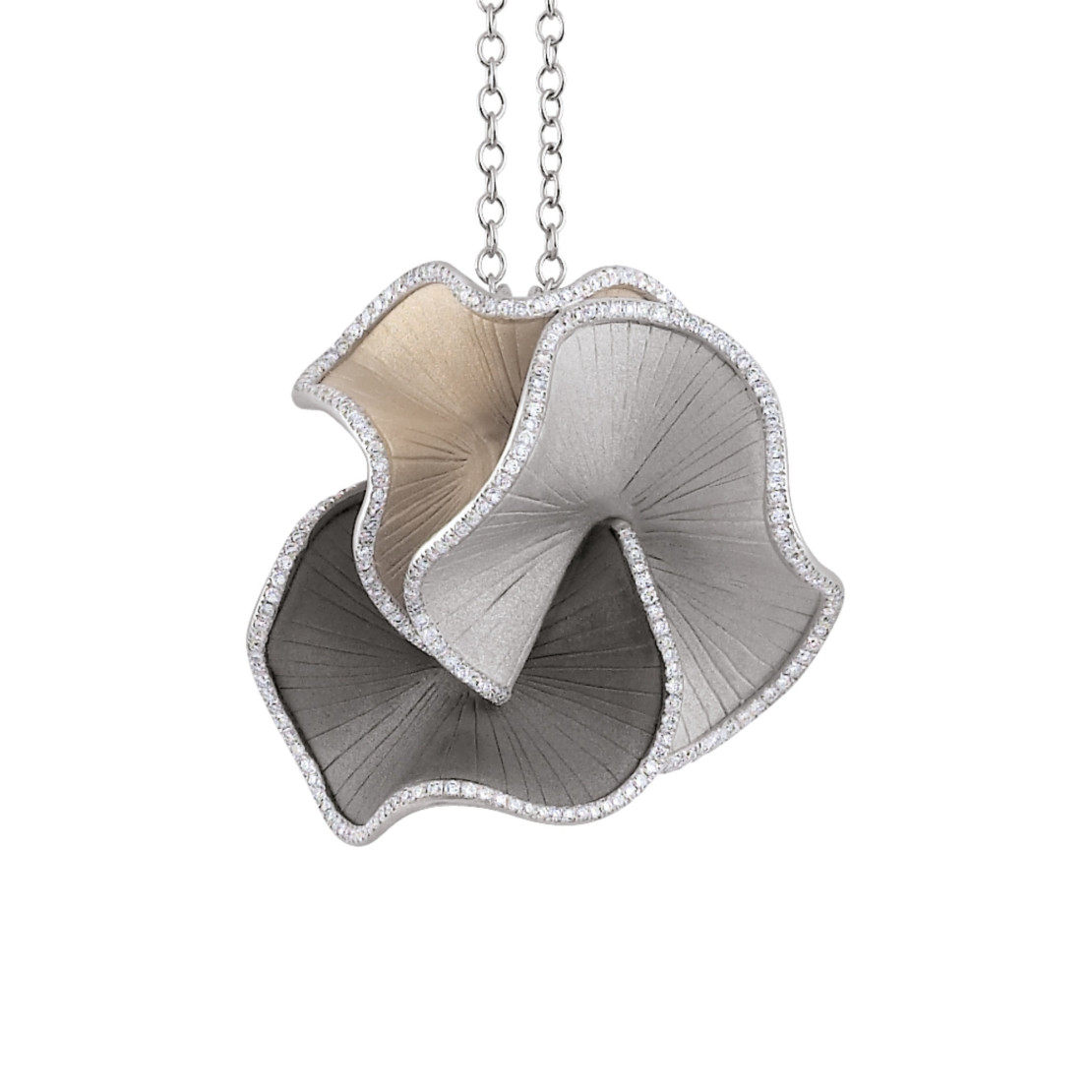 Ref. GPE1673T - Das einzigartige zeitgenössische Design von Cammilli verstärkt das skulpturale Volumen der Schmuckstücke, das die Edelsteine mit ihren ungewöhnlichen Bewegungen hervorheben. Die fließenden und essentiellen Formen wechseln sich mit seidigen Oberflächen einer unkonventionellen Ästhetik ab.