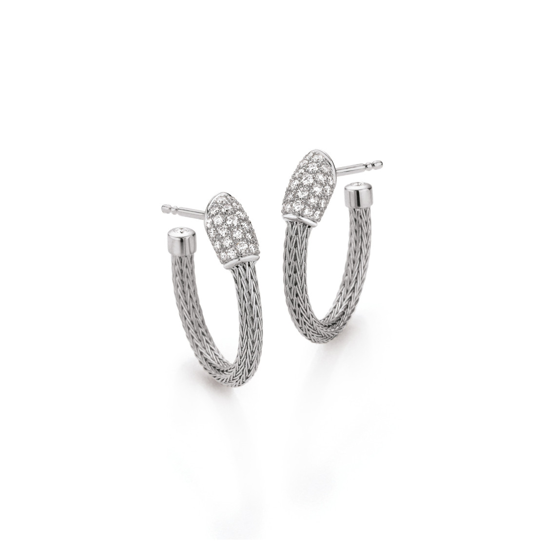 Ref. HSC1.1-2.5 750 1 00124 - Mesh Creolen mit Brillant-Pavé Element. - Die ikonischen Mesh Strickketten und „Flex“-Armbänder von Jörg Heinz runden den perfekten Look ab.