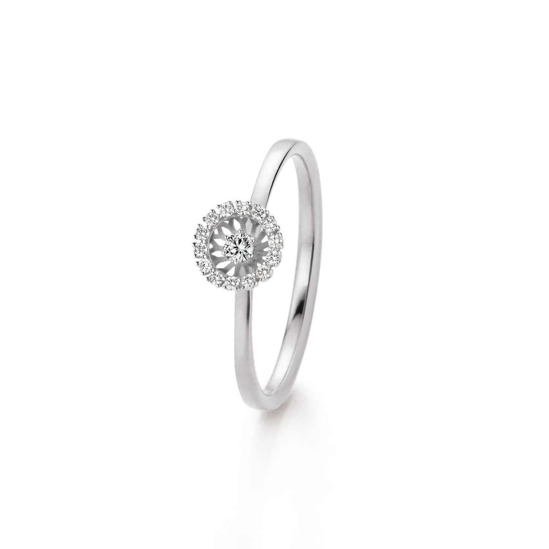 Ref. SR01.1-2.3 750 1 00124 54 - Filigran und dennoch verspielt. Der 360° frei bewegliche Diamant macht die Swing Collection faszinierend lebendig. Der Stein folgt spielerisch jeder leichten Bewegung. Kommt die Trägerin zur Ruhe, findet auch der Stein wieder zu seiner Mitte zurück. So funkelt der Diamant bei jeder Bewegung lebendig und ruht doch ganz in sich selbst.