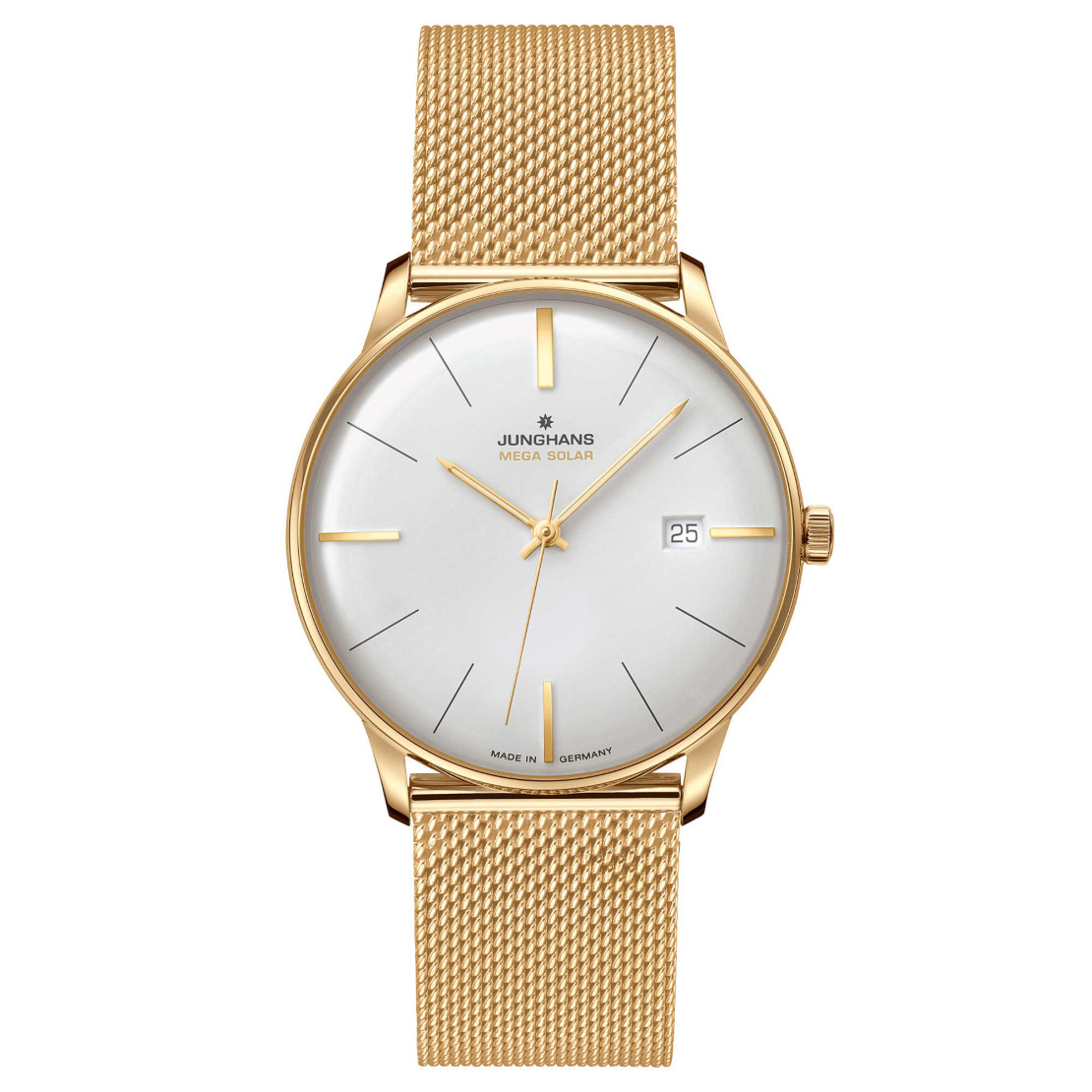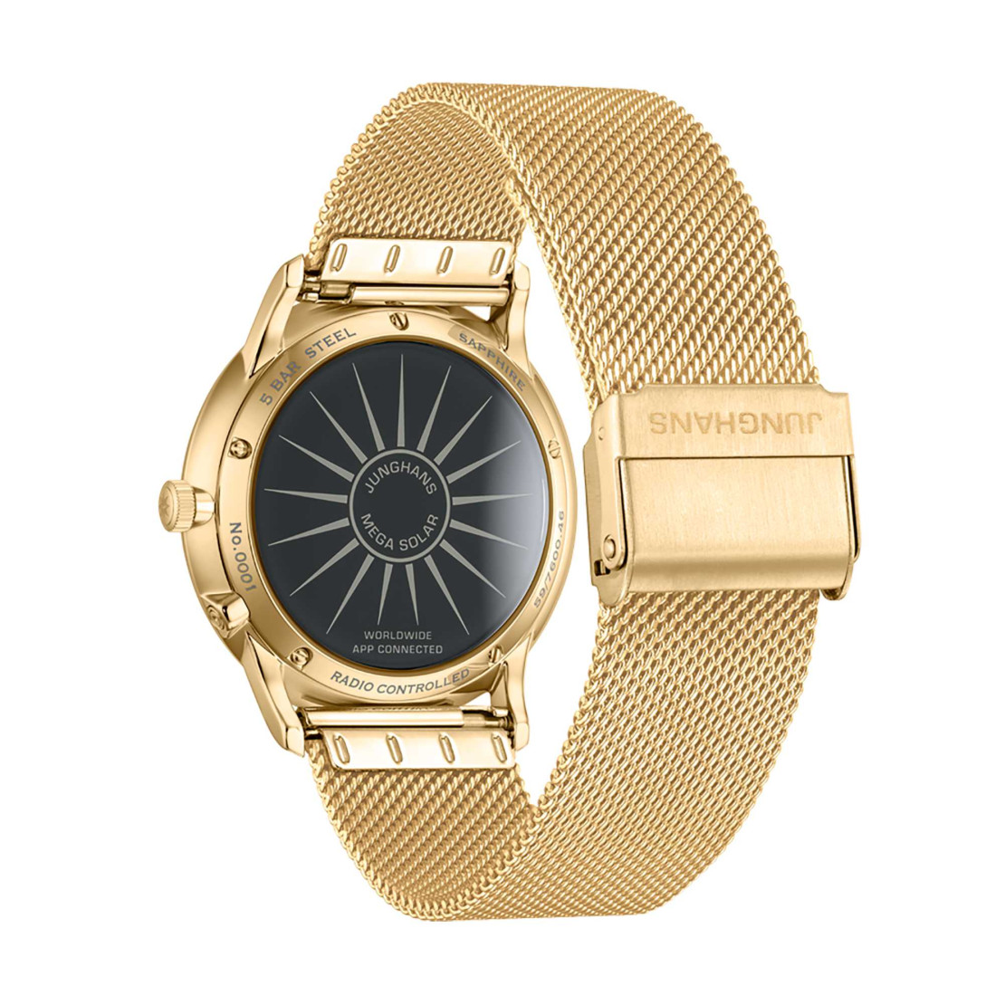 Ref. 59/7600.46 - Diese Uhr vereint zwei Kernkompetenzen von Junghans: Schönste Uhrengestaltung und die hauseigene Funktechnologie. Außerhalb von Funksignalen lässt sich die Uhr einfach über die Krone oder mit der Junghans App einstellen. Und nachhaltig ist die Meister MEGA Solar auch – dank Solarantrieb.