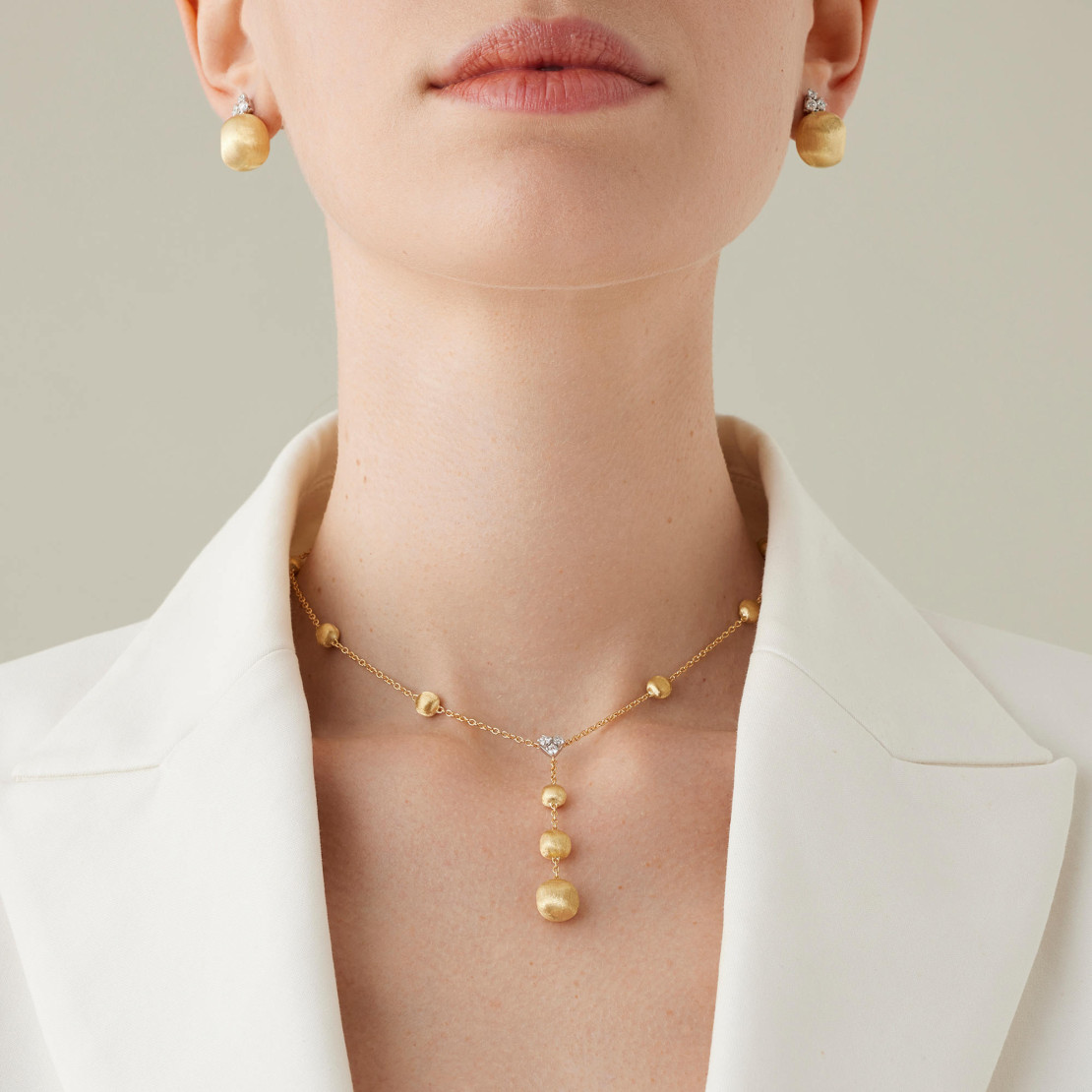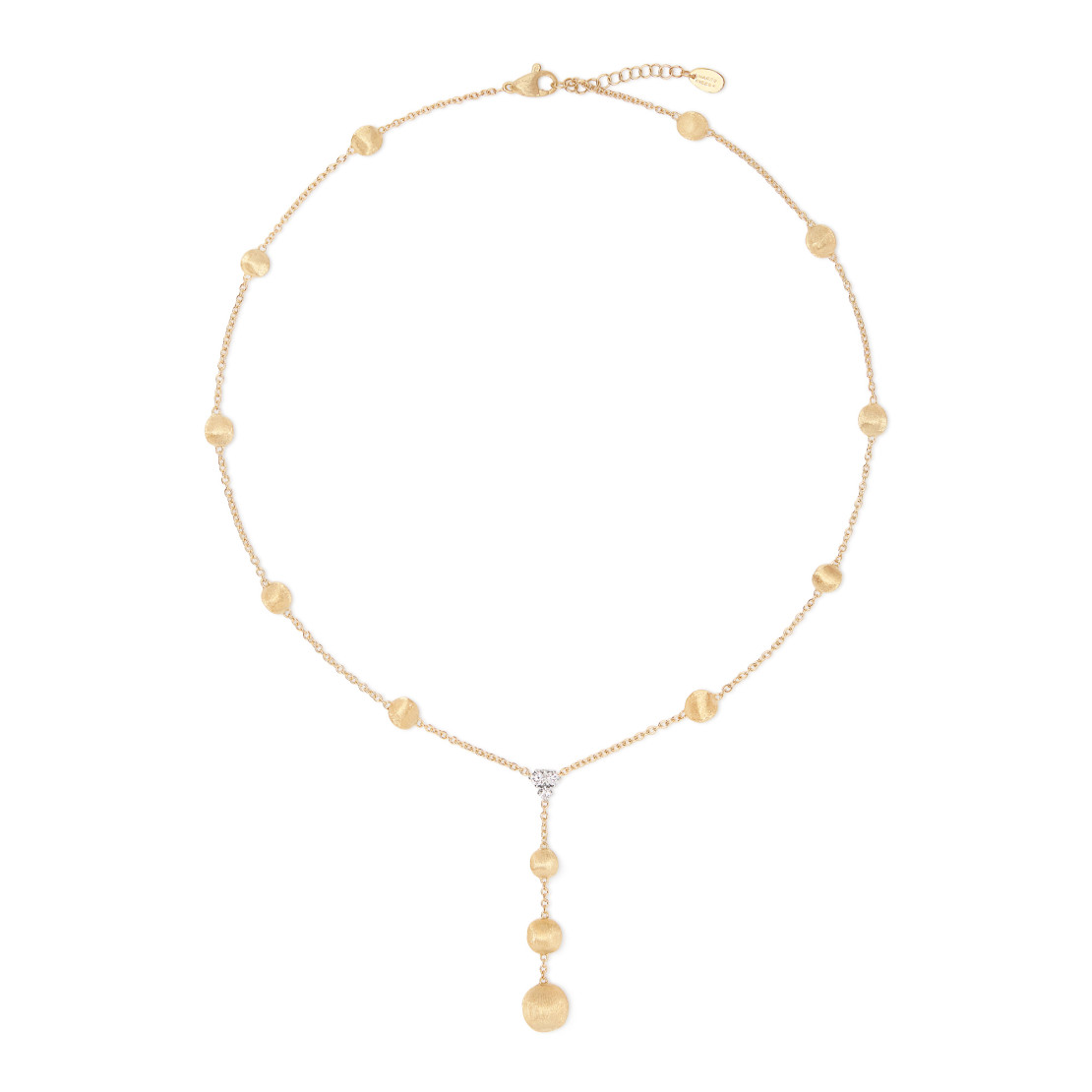 Ref. CB2834 B YW - Diese zarte und kostbare Halskette aus 18 Karat Gelbgold ist mit der alten florentinischen Technik fein von Hand graviert und verfügt über einen auffälligen zentralen Diamantscheinwerfer. Ein zeitloses Design, das Sie mit Anhängern in unterschiedlichen Längen kombinieren oder als eigenes Statement tragen können.