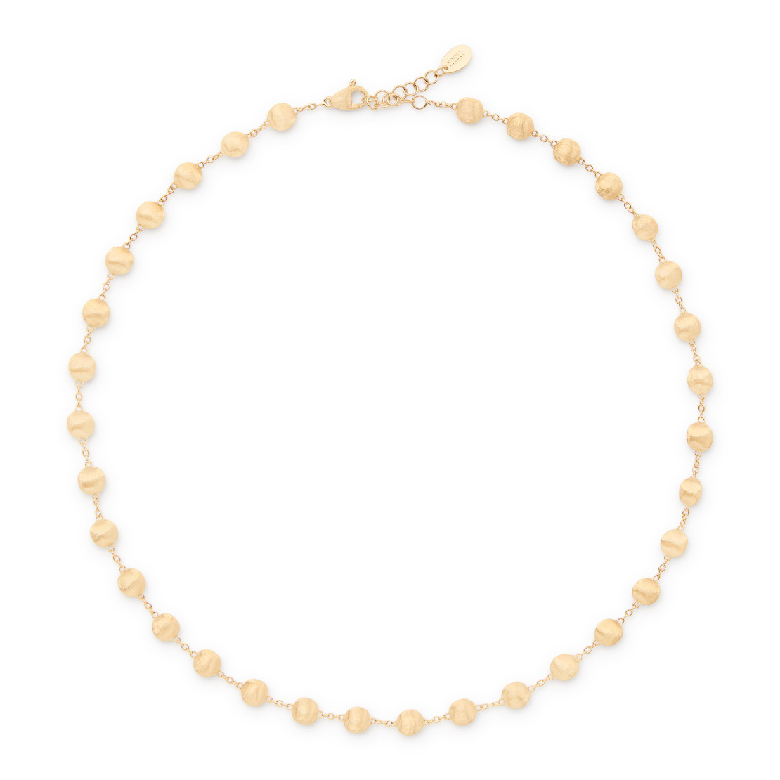 Ref. CB2835 Y - Diese atemberaubende Halskette zeichnet sich durch ihre zarte Abfolge von Perlen aus 18 Karat Gelbgold aus. Die unregelmäßige Oberfläche wird mit der alten florentinischen Technik fein von Hand graviert, was dem Gold eine feine, gebürstete Textur verleiht. Tragen Sie diese Halskette allein oder mit Ketten in verschiedenen Längen für einen gehobenen Look.