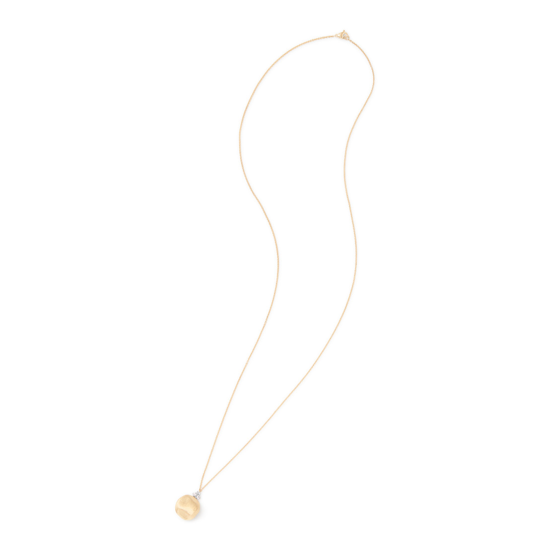 Ref. CB2838 B YW - Eine lange Gliederkette und ein Anhänger aus 18 Karat Gelbgold mit einer unregelmäßigen, strukturierten Oberfläche. Das Collier ist mit der alten florentinischen Technik fein von Hand graviert und mit einem goldenen Bügel akzentuiert, der mit Diamanten im Brillantschliff besetzt ist. Dieses Design eignet sich perfekt für den Tag und die Nacht und ist atemberaubend, wenn es mit anderen Anhängern kombiniert wird.