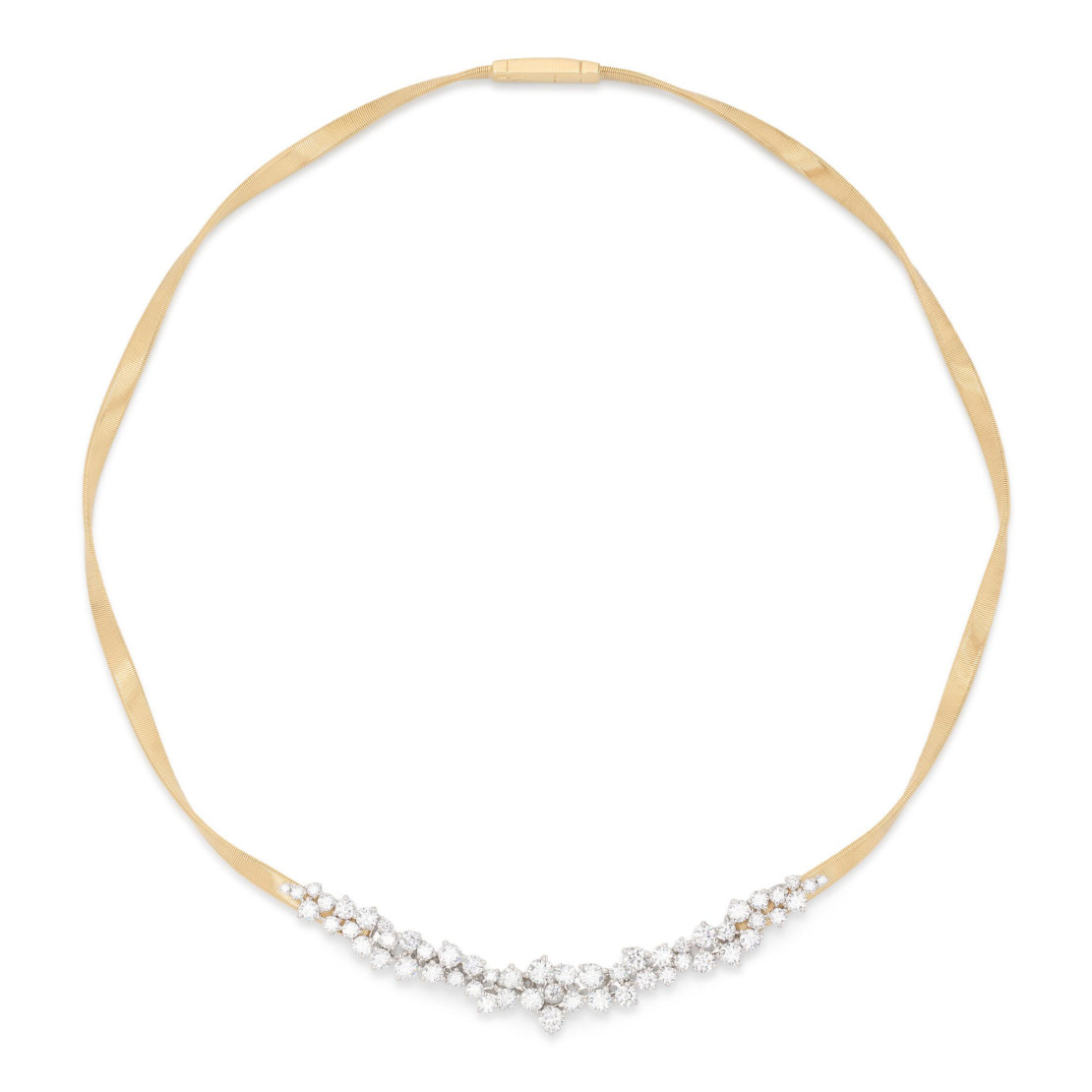 Ref. CG750 B YW - Ein raffinierte Balance von Licht und Materie. Dieses einreihige Collier aus 18 Karat Gelbgold wurde mit der exklusiven Coil-Technik gefertigt. Eine Sequenz von Diamanten in Brillantschliff, die in einem leicht unregelmäßigen Muster gefasst sind, erschafft einen glanzvollen, dynamischen Effekt, der das Licht bei jeder Bewegung einfängt. Eine Schmuckkreation, die Raffinesse und Natürlichkeit vereint und zeitlose Eleganz verkörpert.