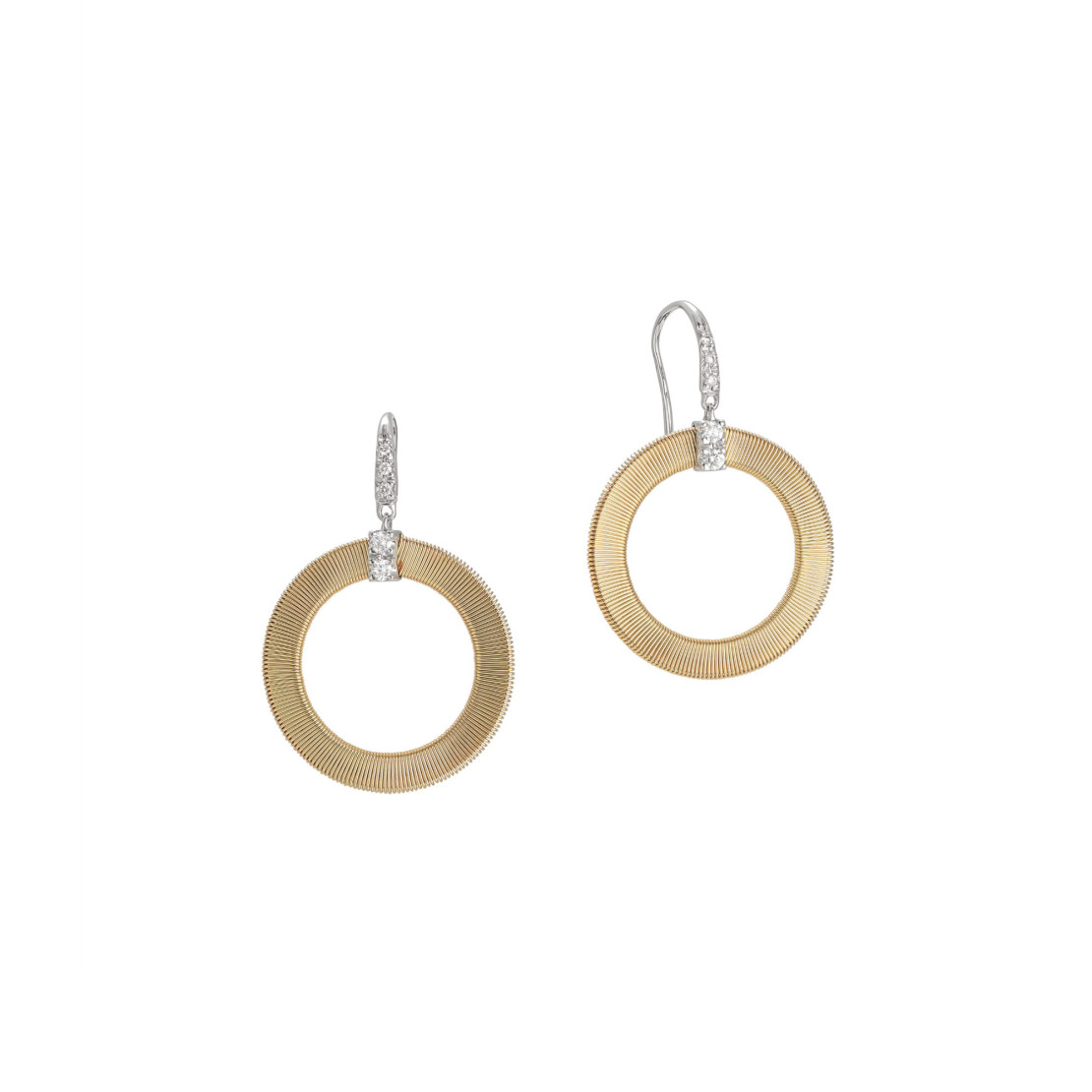 Ref. OG378-AB B YW - Dieser Ohrhänger aus 18-karätigem Gelbgold charakterisiert sich durch seine weiche, runde Linienführung. Er besteht aus einer Flachspirale und hat einen Haken mit Diamanten im Brillantschliff.