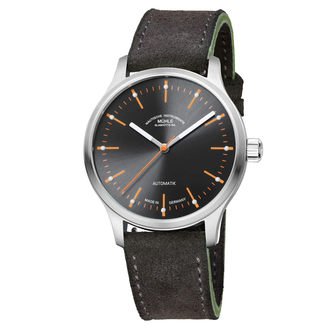 Ref. M1-40-75-LBV-I - Seriöses Grau trifft auf kreatives Orange, traditionelle Mechanik auf lifestyliges Design, luxuriöse Anmutung auf perfekte Watch-Life-Balance: Die Panova Grau bezieht ihren besonderen Reiz aus spannungsreichen Gegensätzen. Diese verleihen der neuen Mühle-Uhr eine ganz eigene Ästhetik und einen vielschichtigen Charakter. Das beste Beispiel dafür ist das grau-metallische Zifferblatt mit seinem facettenreichen Licht- und Schattenspiel.