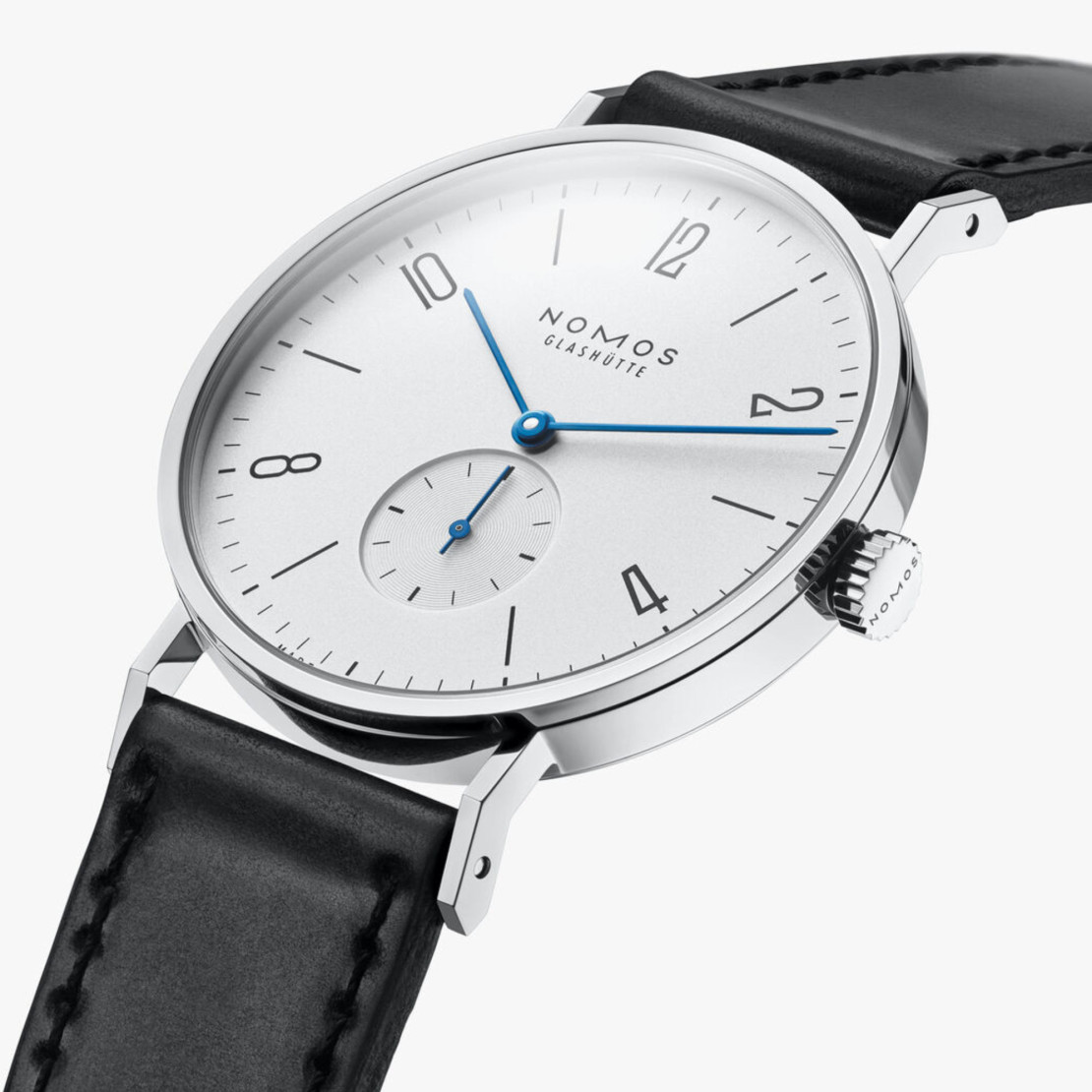Ref. 164 - Ganz schön stattlich: Mit 38 Millimetern Durchmesser wirkt der Designklassiker von NOMOS Glashütte noch flacher, noch eleganter und hat schlicht perfekte Proportionen für die meisten männlichen Handgelenke. Im Innern arbeitet zuverlässig und ganz klassisch NOMOS-Handaufzugswerk Alpha. Eine große Manufaktur-Uhr fürs Leben.
