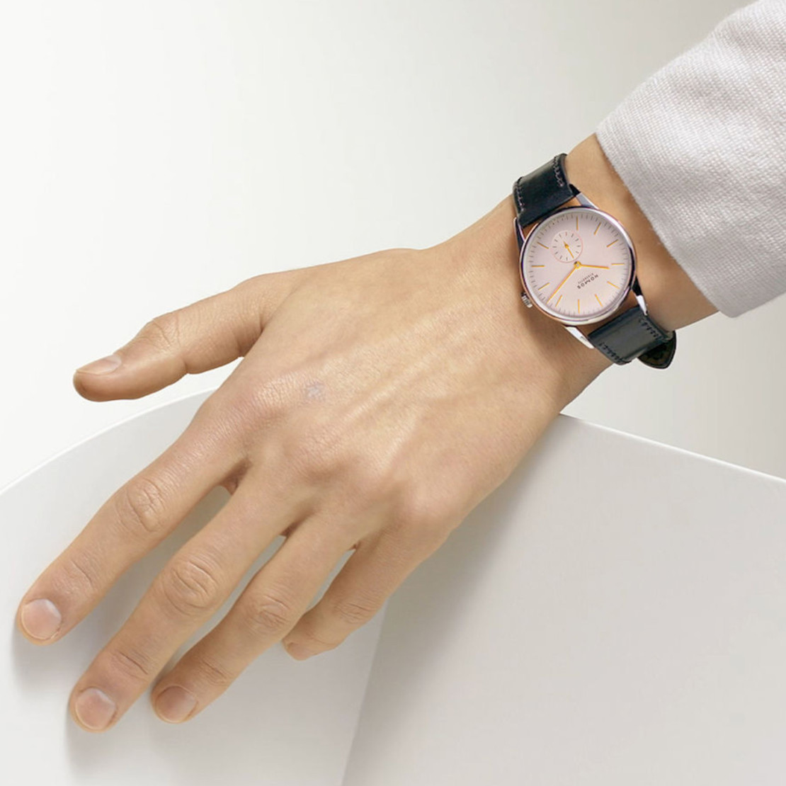 Ref. 352 - Feiner als jede Perlenkette, auch einen Tick moderner: Der poetische NOMOS-Klassiker Orion, hier mit roséfarbenem Zifferblatt, ist Schmuck genug für den großen Auftritt, macht sich jedoch auch auf dem heimischen Sofa wunderbar. Farbe, Form und auch das hellbraune Velourslederband schmeicheln der Haut, dem Auge - und besonders zarten Handgelenken. Unter dem Boden aus Saphirglas arbeitet, formvollendet, Manufakturkaliber Alpha.