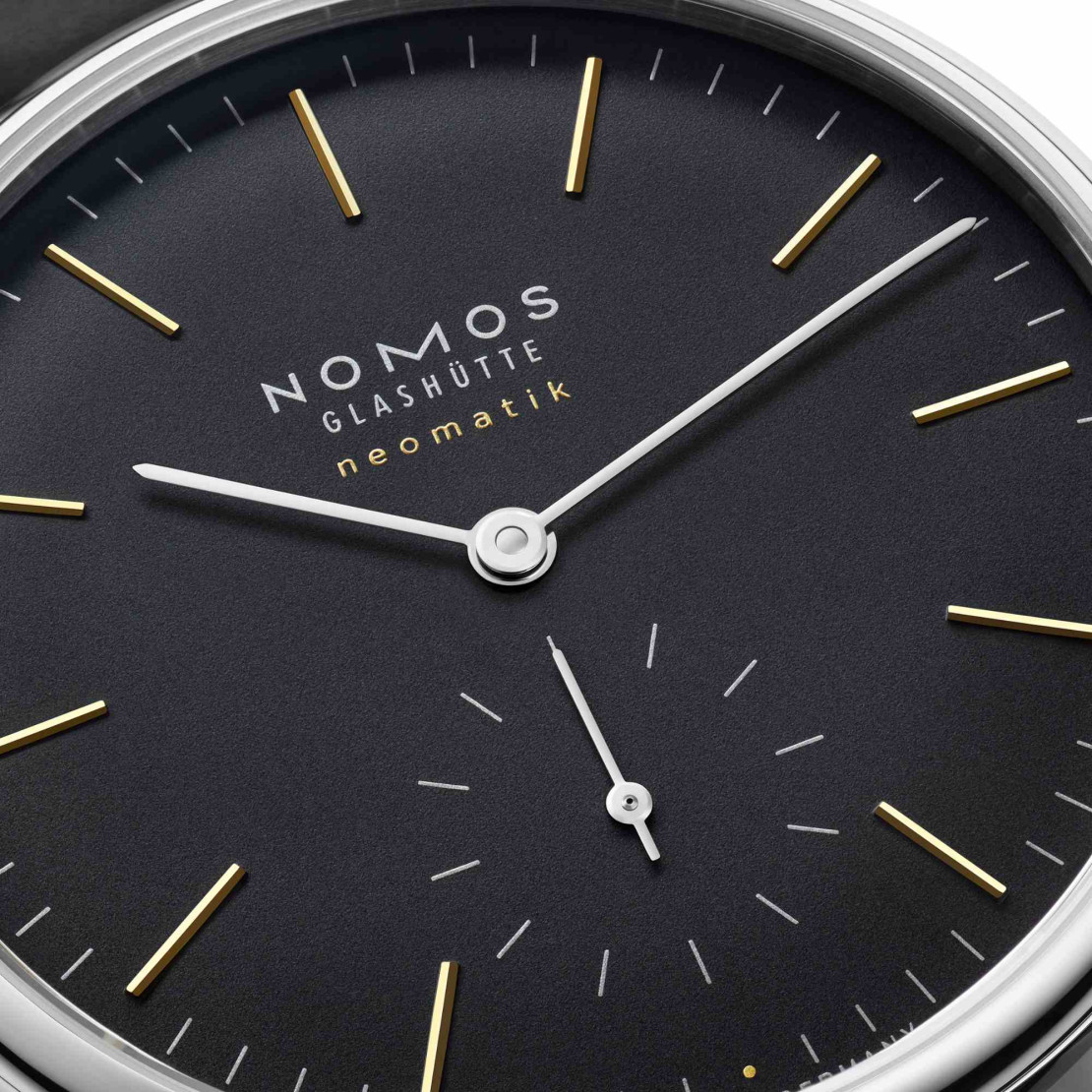 Ref. 396 - Wenn die Abendeinladung ein Black-Tie-Outfit nahelegt, ein langes Kleid oder einen Smoking, darf es am Handgelenk nur die eleganteste Dresswatch sein. Orion neomatik new black zum Beispiel. Diese manufakturgefertigte Automatikuhr erfüllt noch den strengsten Dresscode, ist vollendet geformt, spielt raffiniert mit Gold und Silber auf tiefem Schwarz und verbindet Glashütter Präzision mit dem Glanz der Nacht.