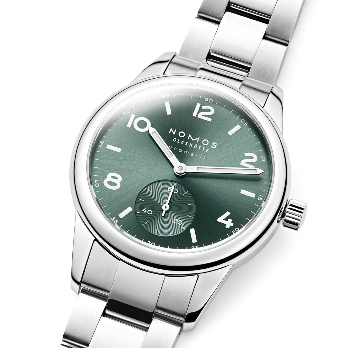 Ref. 745 - Club Sport neomatik in Petrolgrün hat einen Gehäusedurchmesser von 37 Millimetern – die Automatikuhr mit dem aufwendigen Strahlenschliff glänzt damit an jedem Handgelenk. In motivierender Sportlichkeit begleitet sie durch den bewegten Alltag. Angetrieben wird das leistungsstarke Modell von DUW 3001, dem innovativen Manufakturkaliber von NOMOS Glashütte. Das bei NOMOS entwickelte und gefertigte Uhrwerk ist nur 3,2 Millimeter hoch und für beste Ganggenauigkeit mit dem NOMOS-Swing-System ausgestattet. Wer, vom Schreibtisch kommend, beim Sprung in den Pool keine Zeit verlieren will, ist mit dieser Uhr gut beraten, denn Club Sport neomatik petrol ist bis 20 atm wasserdicht und bleibt beim Schwimmen einfach am Handgelenk.