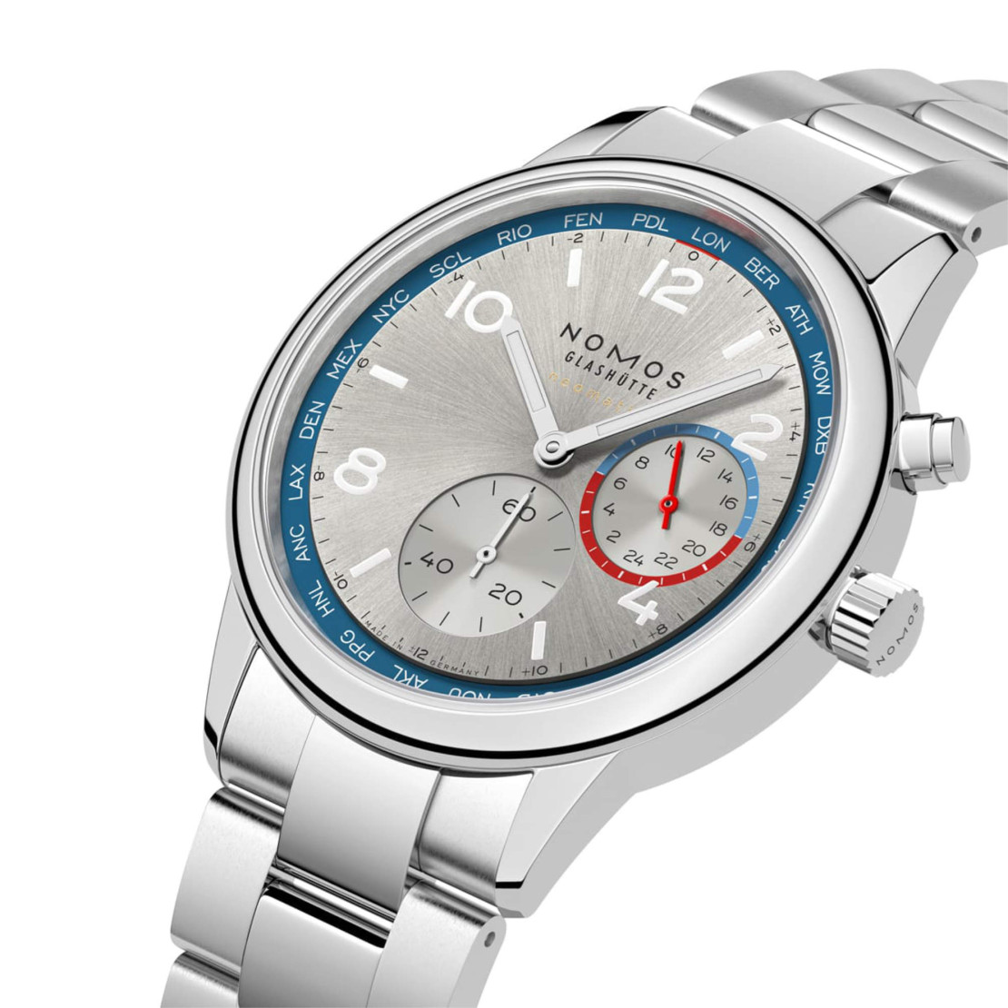 Ref. 791 - Weltzeit neu gedacht: robust, strahlend, übersichtlich und elegant. Das superflache neomatik-Kaliber DUW 3202 ermöglicht eine Gehäusehöhe von unter 10 Millimetern – damit ist Club Sport neomatik einer der weltweit schlanksten Worldtimer. Die Zeitunterschiede zwischen der ausgewählten Region und den anderen Zeitzonen lassen sich auf einen Blick erfassen, mit dem Drücker auf 2 Uhr ist der Mechanismus komfortabel zu bedienen, das rhodinierte Zifferblatt mit Strahlenschliff repräsentiert Sportlichkeit pur.