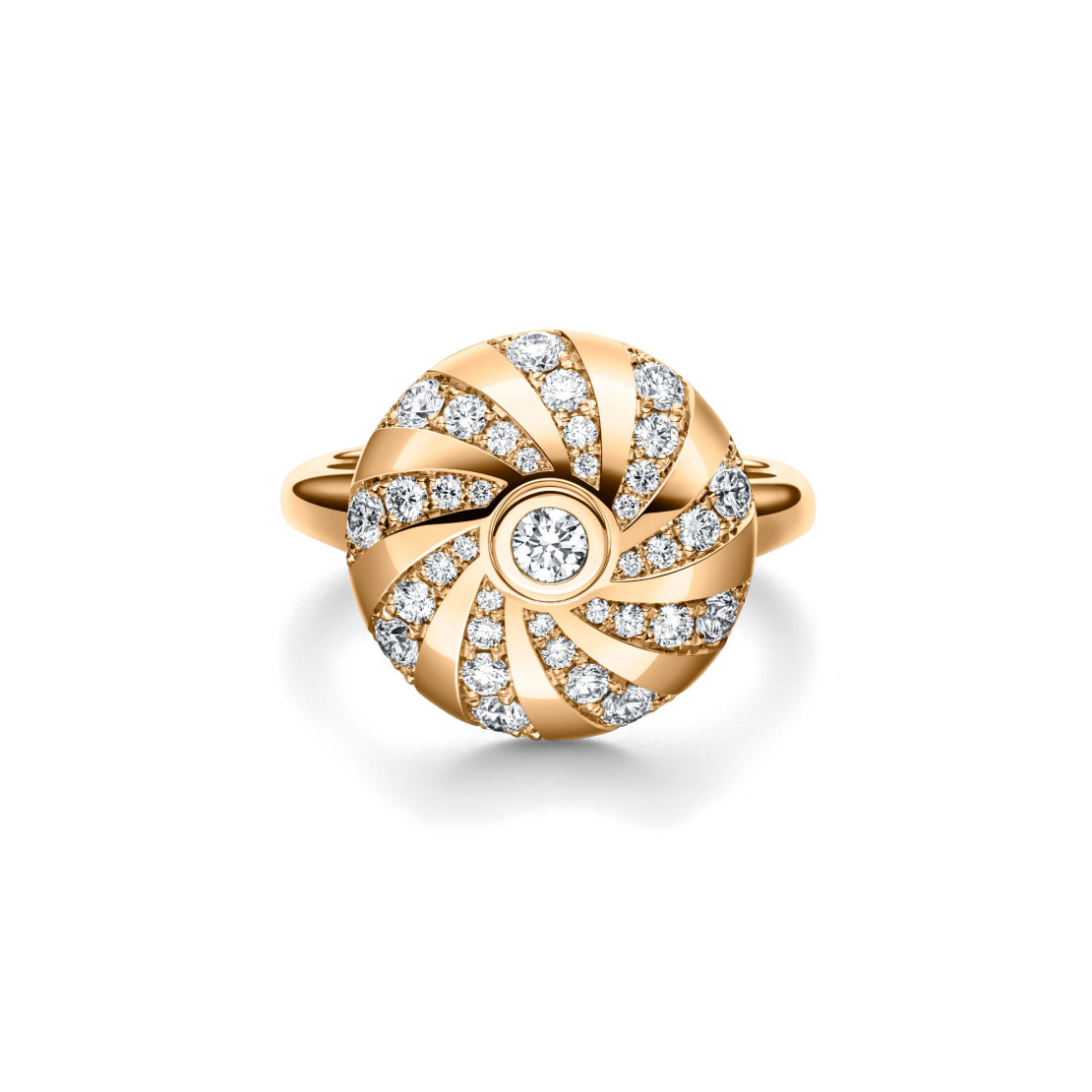 Ref. 118_MD002_080_GW - Kinetischer Ring mit rotierender Linse und Diamantbesatz im Zebra-Look.