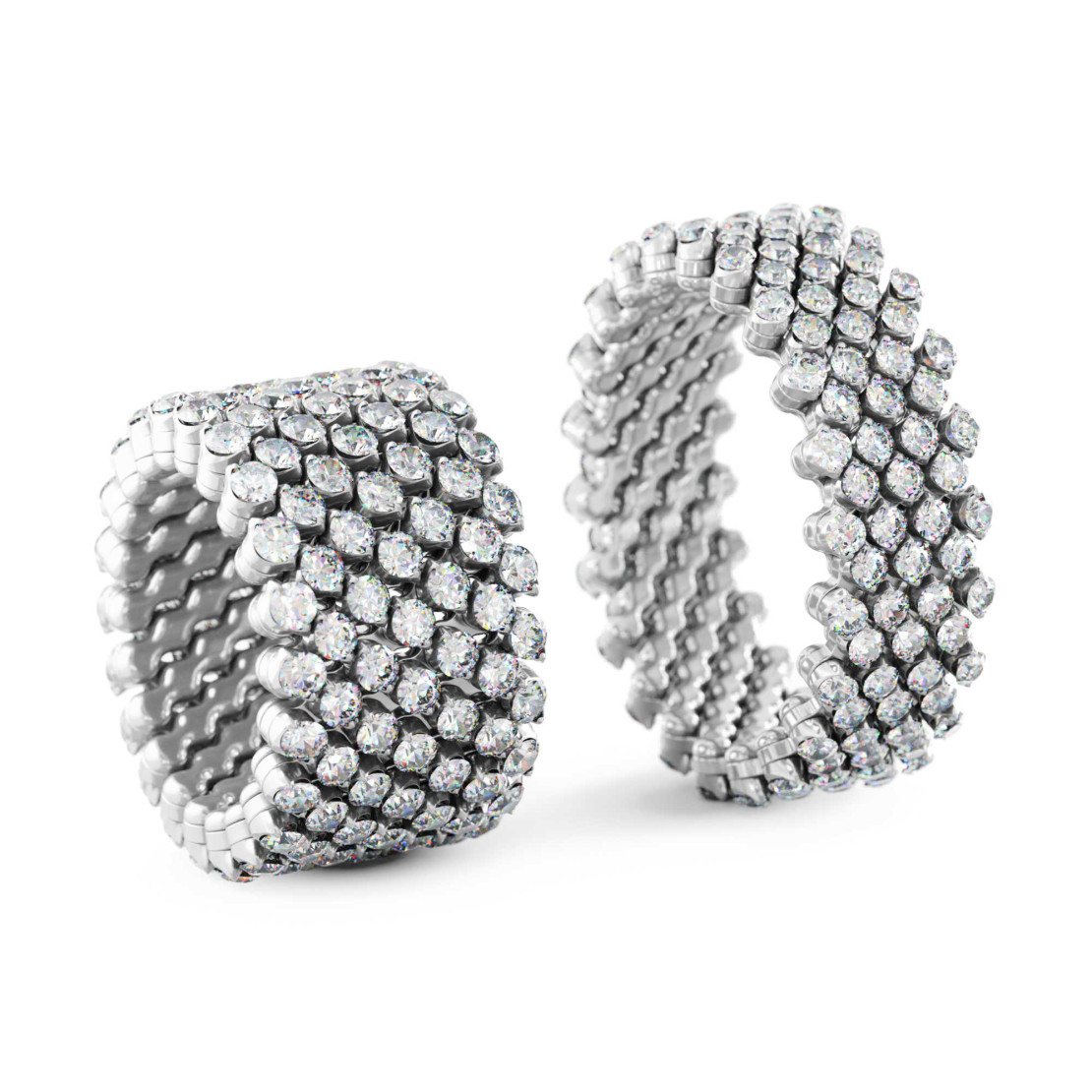 Ref. RMS 7F2 WG WD - Die patentierten Multi-Size Ringe aus der Brevetto-Kollektion sind wahre Verwandlungskünstler. Durch die Kombination aus traditioneller italienischer Juwelenkunst und fortschrittlicher Ingenieurskunst entstehen Ringe, die sich in der Größe spielend leicht verändern lassen. Die vielseitig kombinierbaren Schmuckstücke bestechen außerdem mit ihrer herausragenden Qualität und der Verarbeitung ausschließlich feinster Materialien. Ob als breiter Ring am Ringfinger oder als Eyecatcher am Zeigefinger, die vielseitig kombinierbaren Schmuckstücke aus feinsten Materialien sind in sekundenschnelle wandelbar. - Der abgebildete Ring ist aus 750/- Weißgold gefertigt und vollausgefasst mit Brillanten.