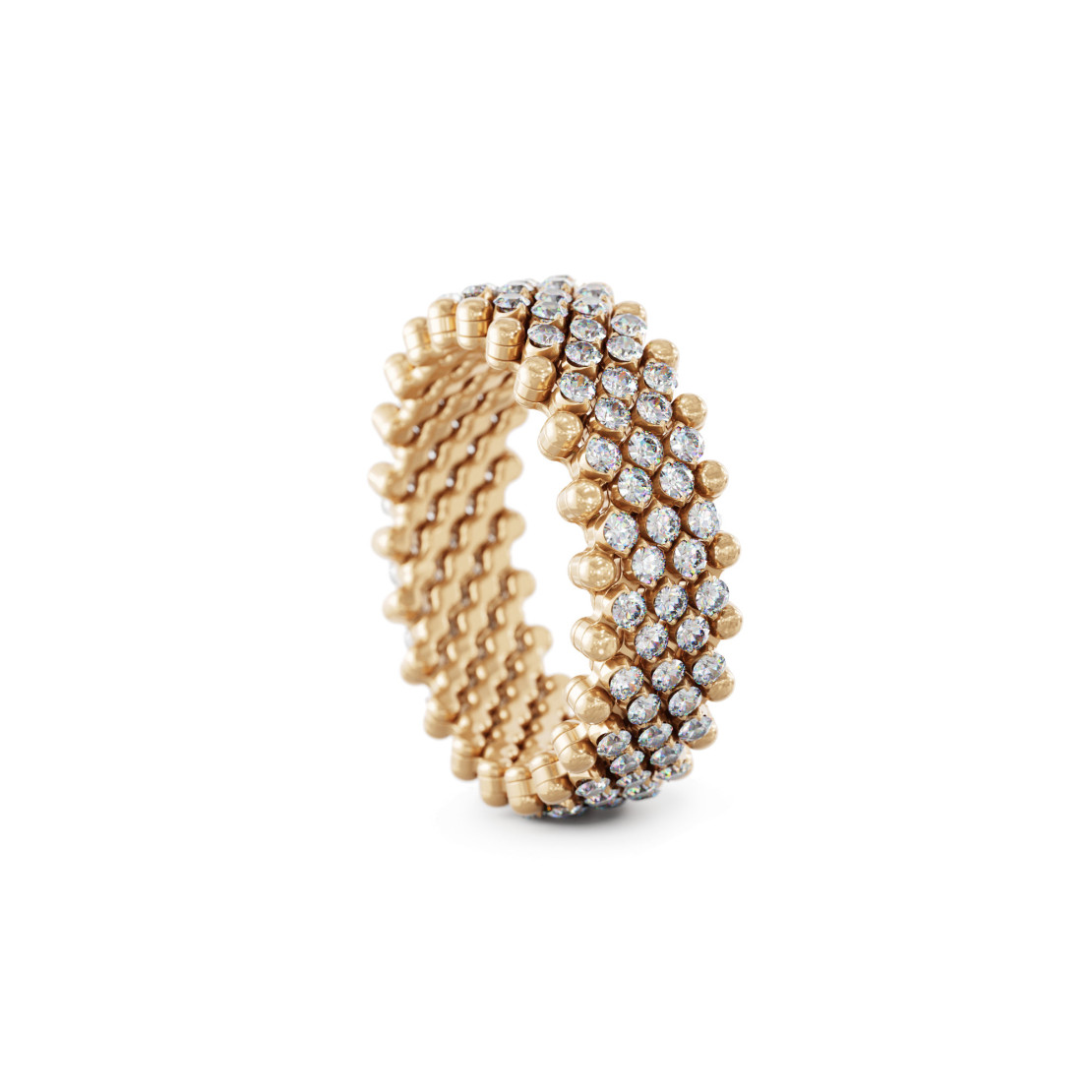 Ref. RMS 7M2 RG WD - Die patentierten Multi-Size Ringe aus der Brevetto-Kollektion sind wahre Verwandlungskünstler. Durch die Kombination aus traditioneller italienischer Juwelenkunst und fortschrittlicher Ingenieurskunst entstehen Ringe, die sich in der Größe spielend leicht verändern lassen. Die vielseitig kombinierbaren Schmuckstücke bestechen außerdem mit ihrer herausragenden Qualität und der Verarbeitung ausschließlich feinster Materialien. Ob als breiter Ring am Ringfinger oder als Eyecatcher am Zeigefinger, die vielseitig kombinierbaren Schmuckstücke aus feinsten Materialien sind in sekundenschnelle wandelbar. - Der abgebildete Ring ist aus 750/- Roségold gefertigt und in der Mitte ausgefasst mit Brillanten.