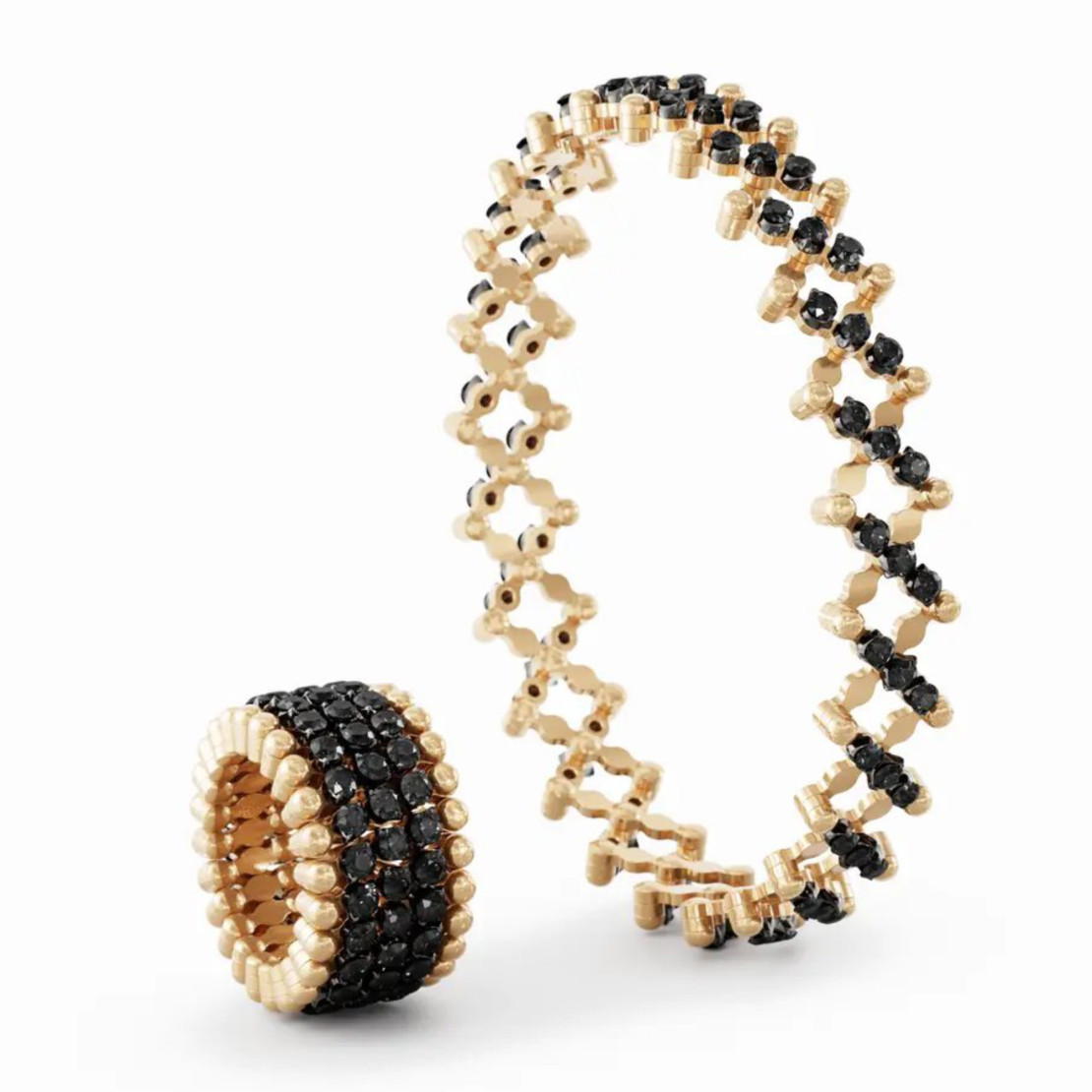 Ref. S.RB 5M4 RBG BD - Dieser patentierte Ring lässt sich von einem Ring bis hin zu einem Armband verändern. Durch die Kombination aus traditioneller italienischer Juwelenkunst und fortschrittlicher Ingenieurskunst entstehen Schmuckstücke, die sich individuell an Ihren jeweiligen Tragewunsch anpassen lassen. Ob als breiter Ring am Ringfinger oder als funkelndes Armband, die vielseitig kombinierbaren Schmuckstücke aus feinsten Materialien sind in sekundenschnelle wandelbar.